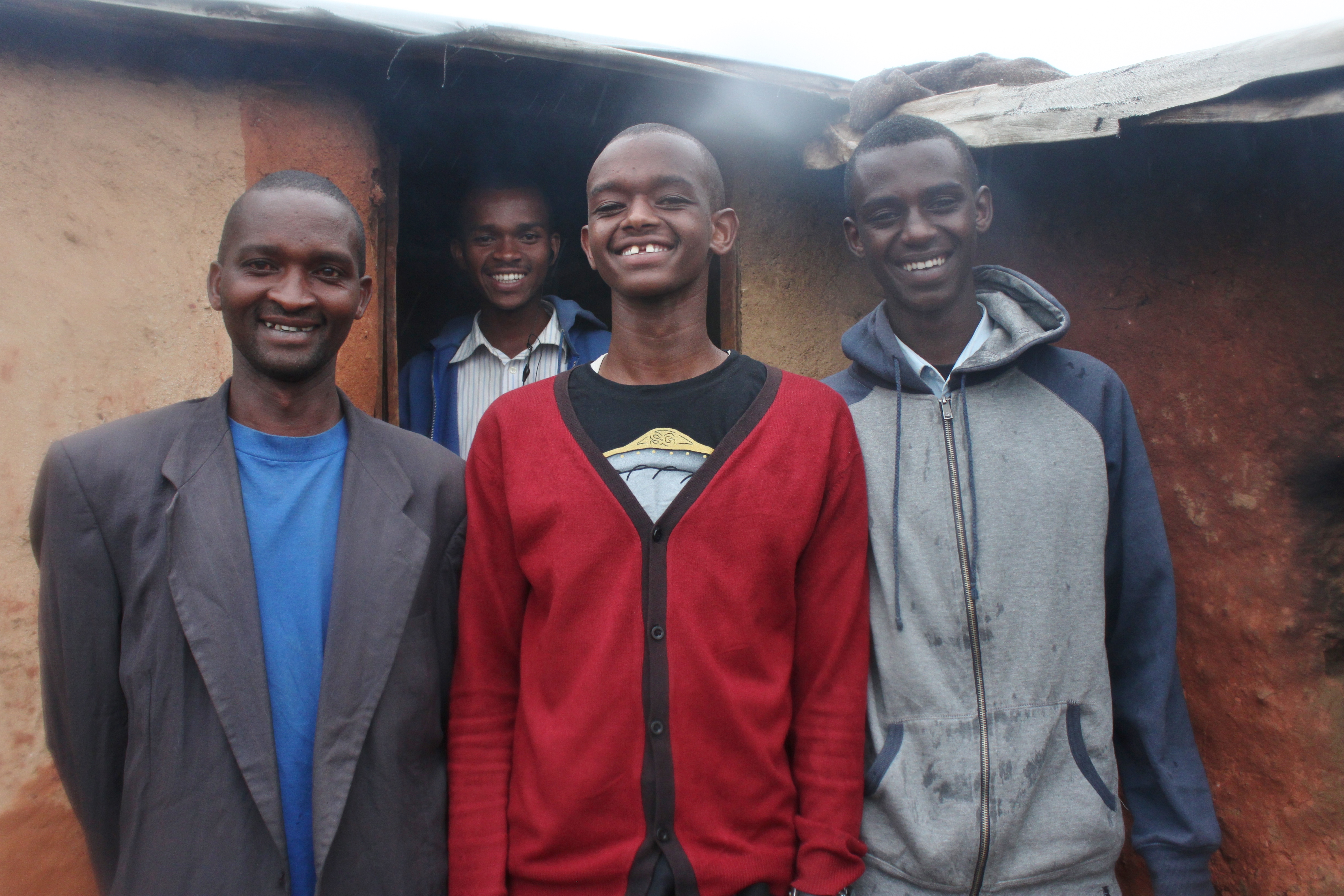 Jean Paul, Moses, Jean Basco and Jean outside their humble home in Gihembe Refugee Camp in Rwanda.